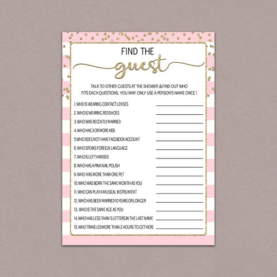 Find The Guest Game Bridal Shower Find The Guest Game Baby Etsy
