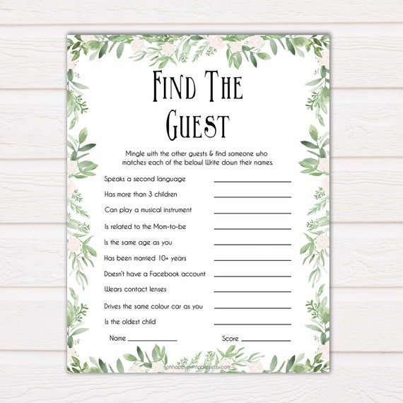 Greenery Find The Guest Baby Shower Game Find The Guest Ice Etsy