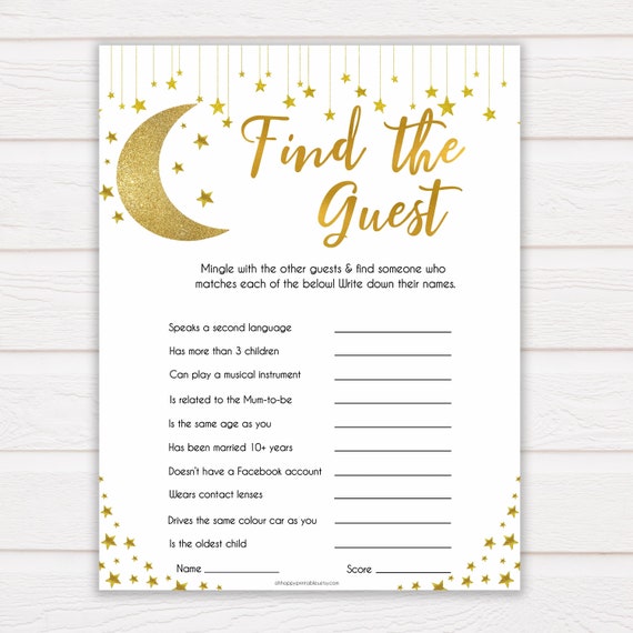 Find The Guest Baby Shower Game Gold Little Star Baby Shower Etsy