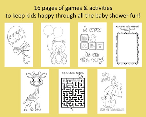 Baby Shower Coloring Activity Book Printable Baby Shower Etsy