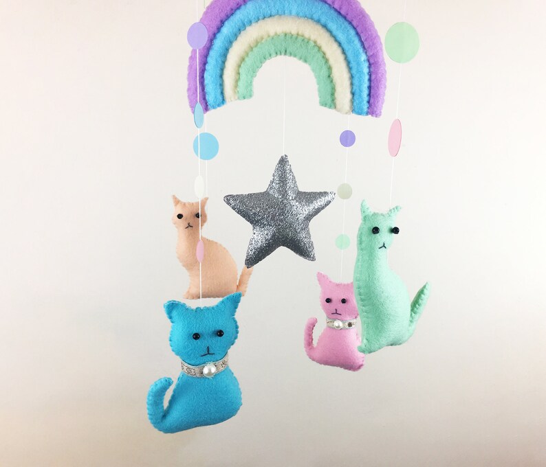 Rainbow Stars And Cats Baby Nursery Mobile Decor Baby Shower Etsy