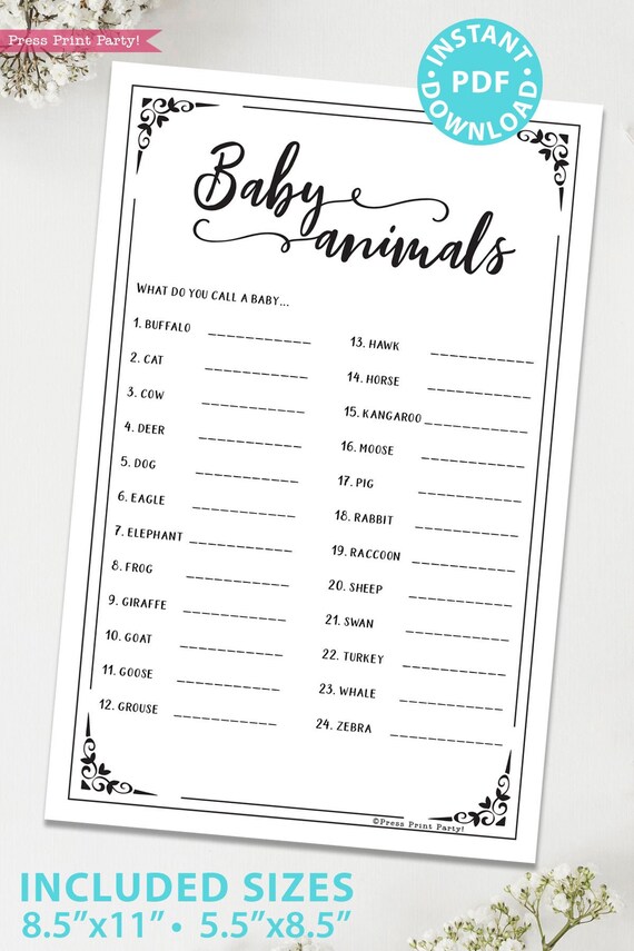 Baby Animals Baby Shower Game Printable Unique Baby Shower Game