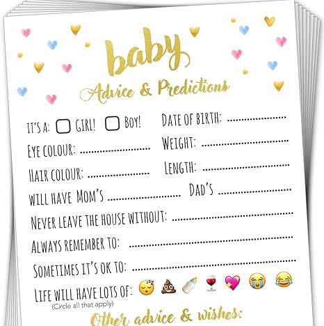 Baby Shower Predictions And Advice Cards Fun Guessing Game For