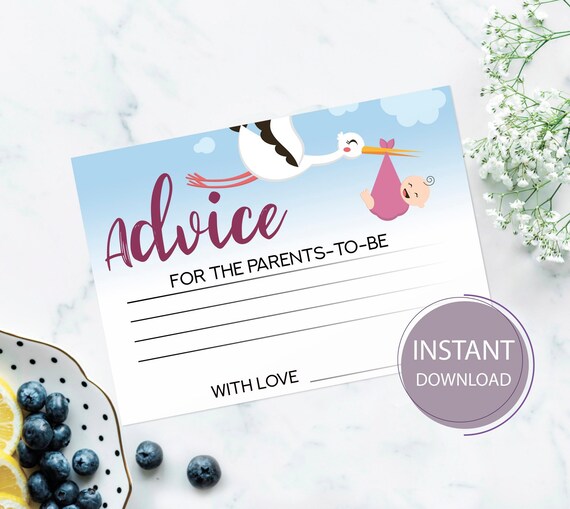 Stork Baby Shower Advice Card Printable Advice Card Pdf Etsy