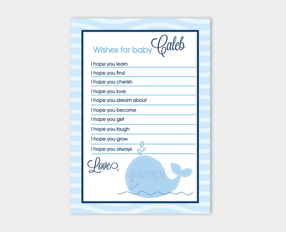 Editable Little Navy Blue Whale Nautical Baby Shower Wishes For