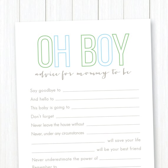 Print Your Own Mommy Advice Cards Oh Boy Outlines Baby Etsy