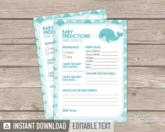 Prediction Advice Baby Shower Activity Whale Baby Shower Theme