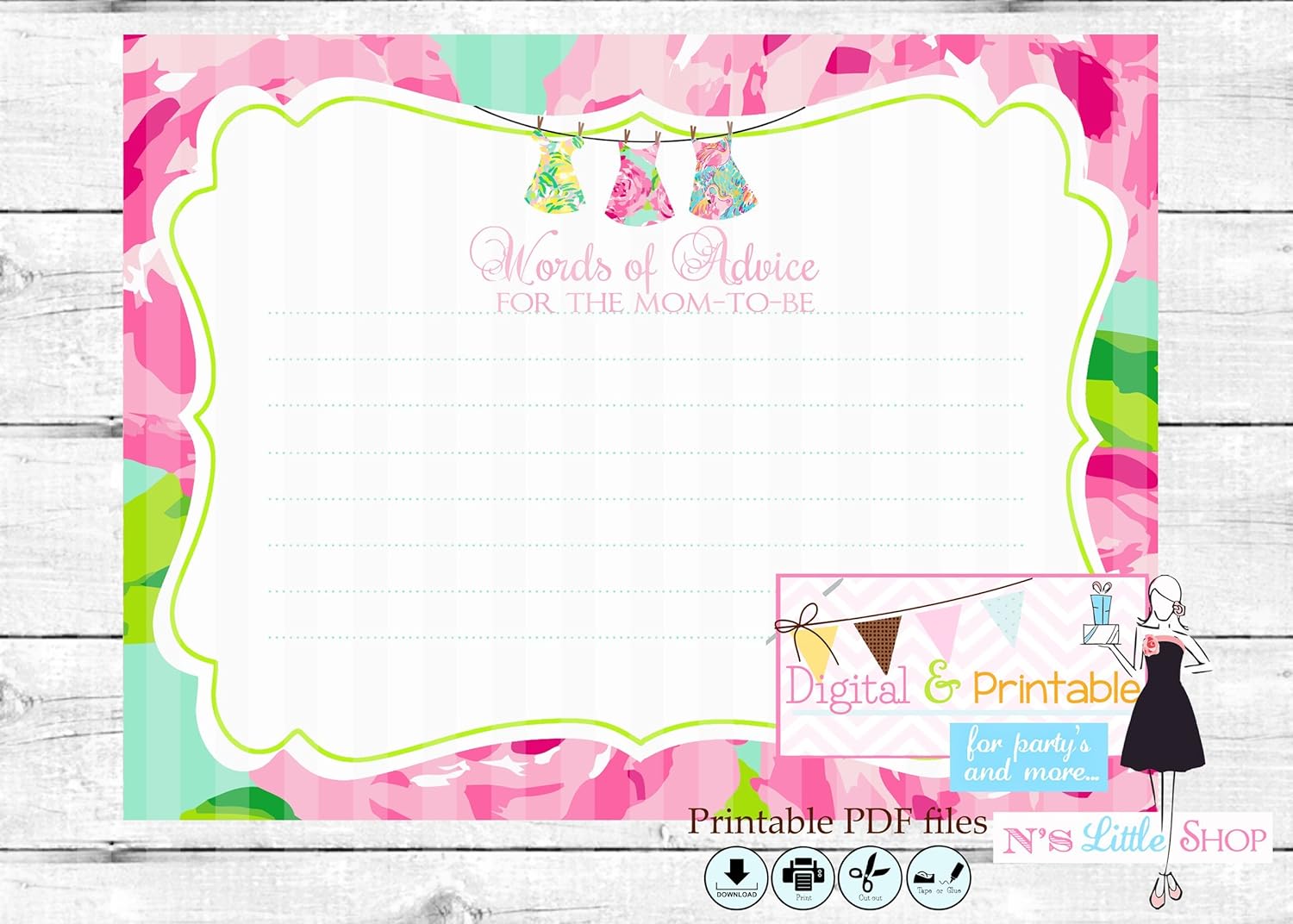 Mom Advice Card Sign Printable Rustic Style Press Print Party