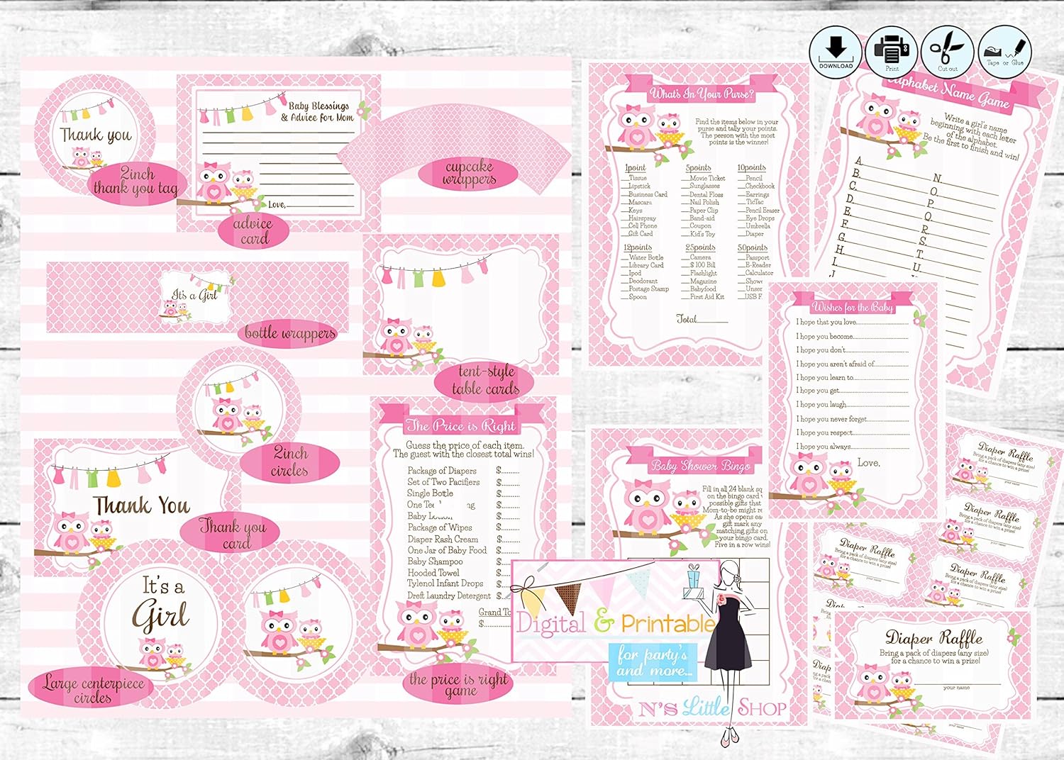 Amazon Com Owl Baby Shower Printable Party Not Editable Digital