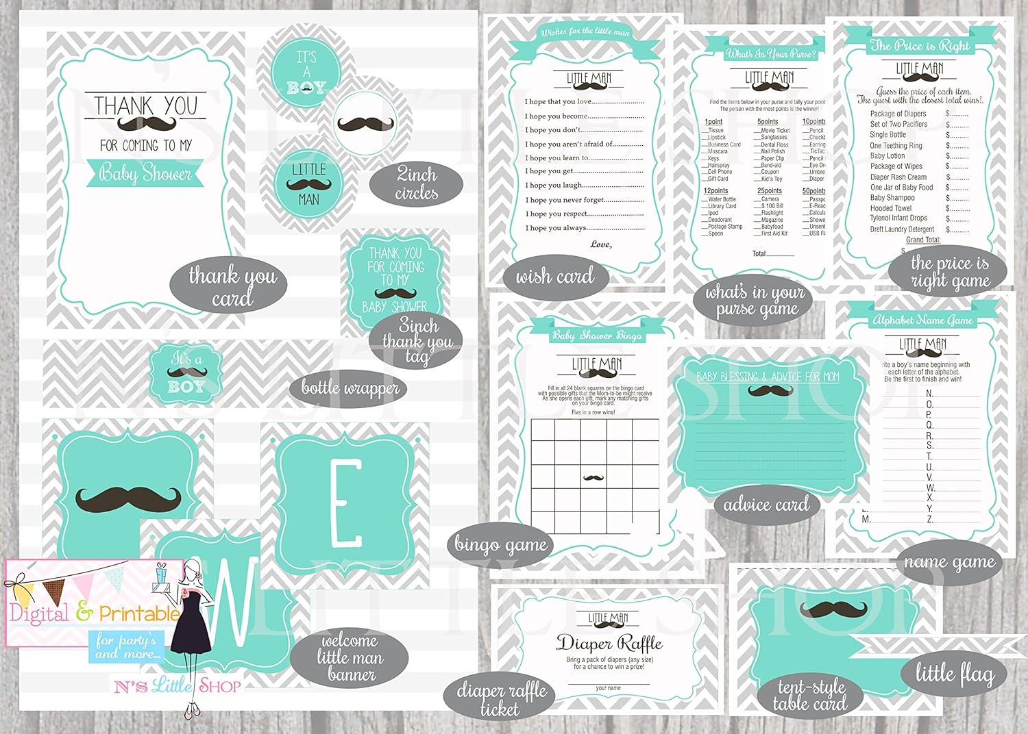Amazon Com Mustache Baby Shower Printable Party Not Editable