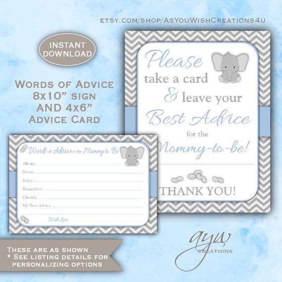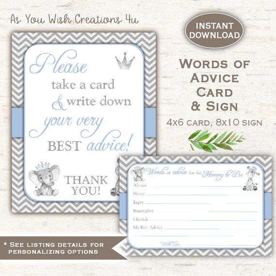Words Of Advice Card Sign Elephant Baby Shower Decorations