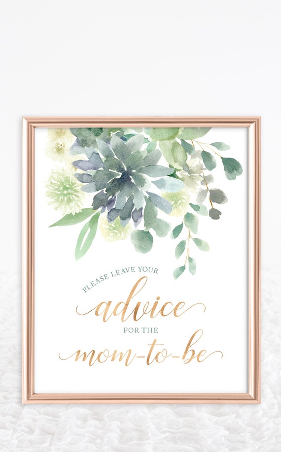Succulent Baby Shower Advice Cards And Sign Printable Instant Etsy