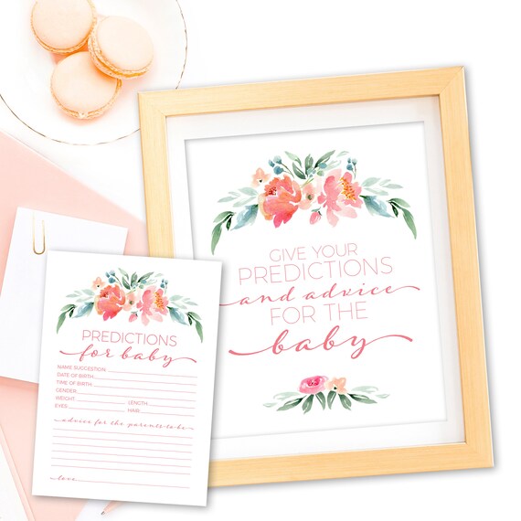 Floral Baby Shower Predictions And Advice Cards Arra Creative