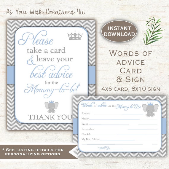 Baby Shower Advice Cards Printable Words Of Wisdom For The Etsy