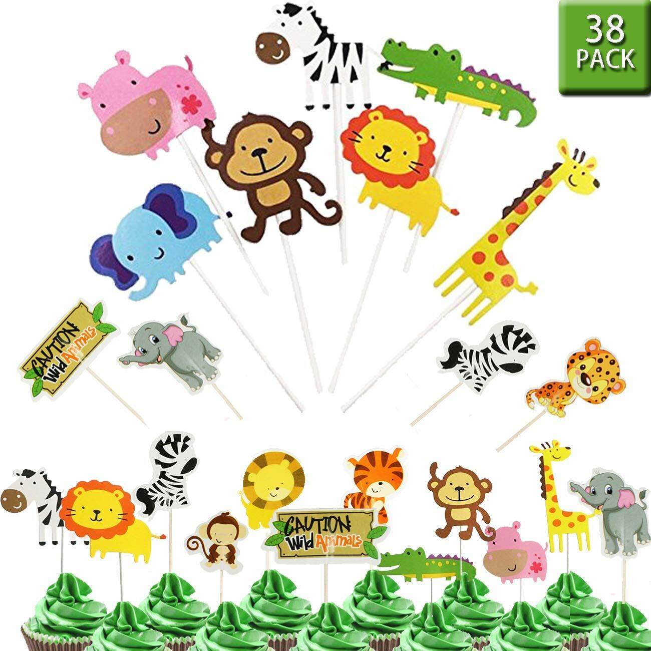38 Pcs Zoo Animals Cake Decorations Food Picks Animal Theme Party