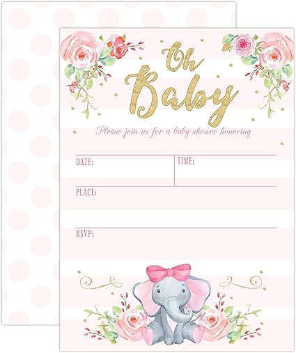 25 Fill In Blank Baby Shower Invitations W Envelopes Pink Elephant