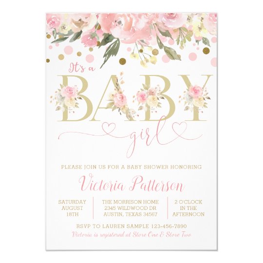 Pink Gold Its A Girl Watercolor Floral Baby Shower Invitation