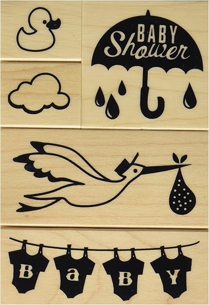 Amazon Com Inkadinkado Baby Shower Mounted Rubber Stamp Set 5 Pc