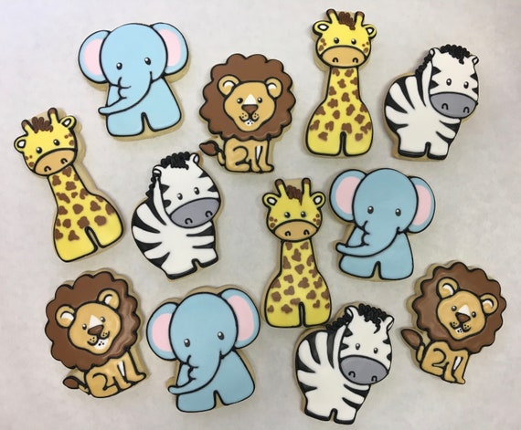 Safari Animal Party Favor Cookies For Birthdays Baby Shower Etsy