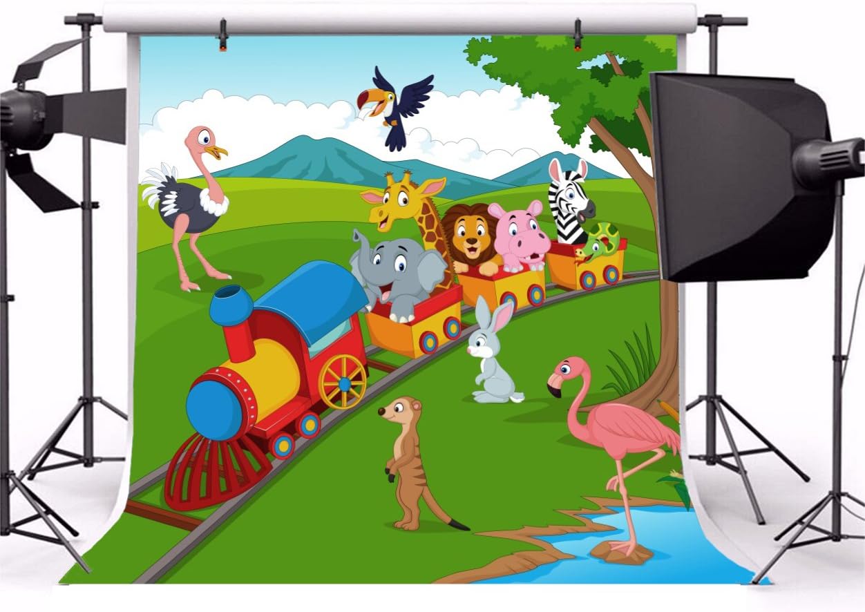 Wolada 7x5ft Zoo Photography Backdrop Cartoon Safari Animals Photo