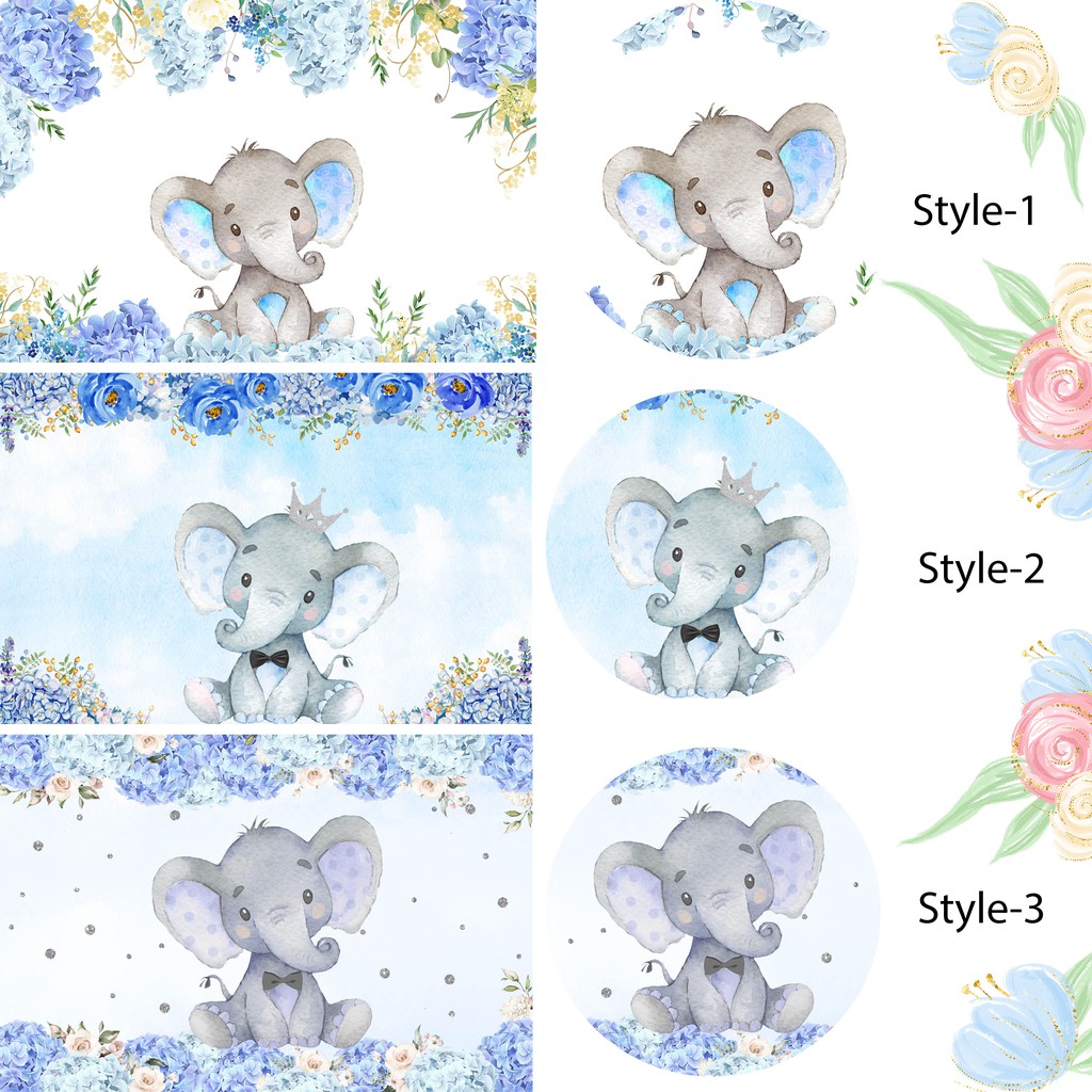 Boy Elephant Baby Shower Backdrop Light Blue Flower Elephant