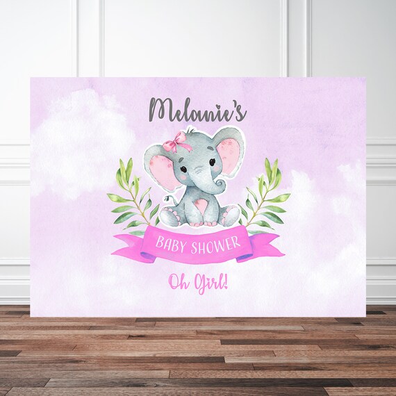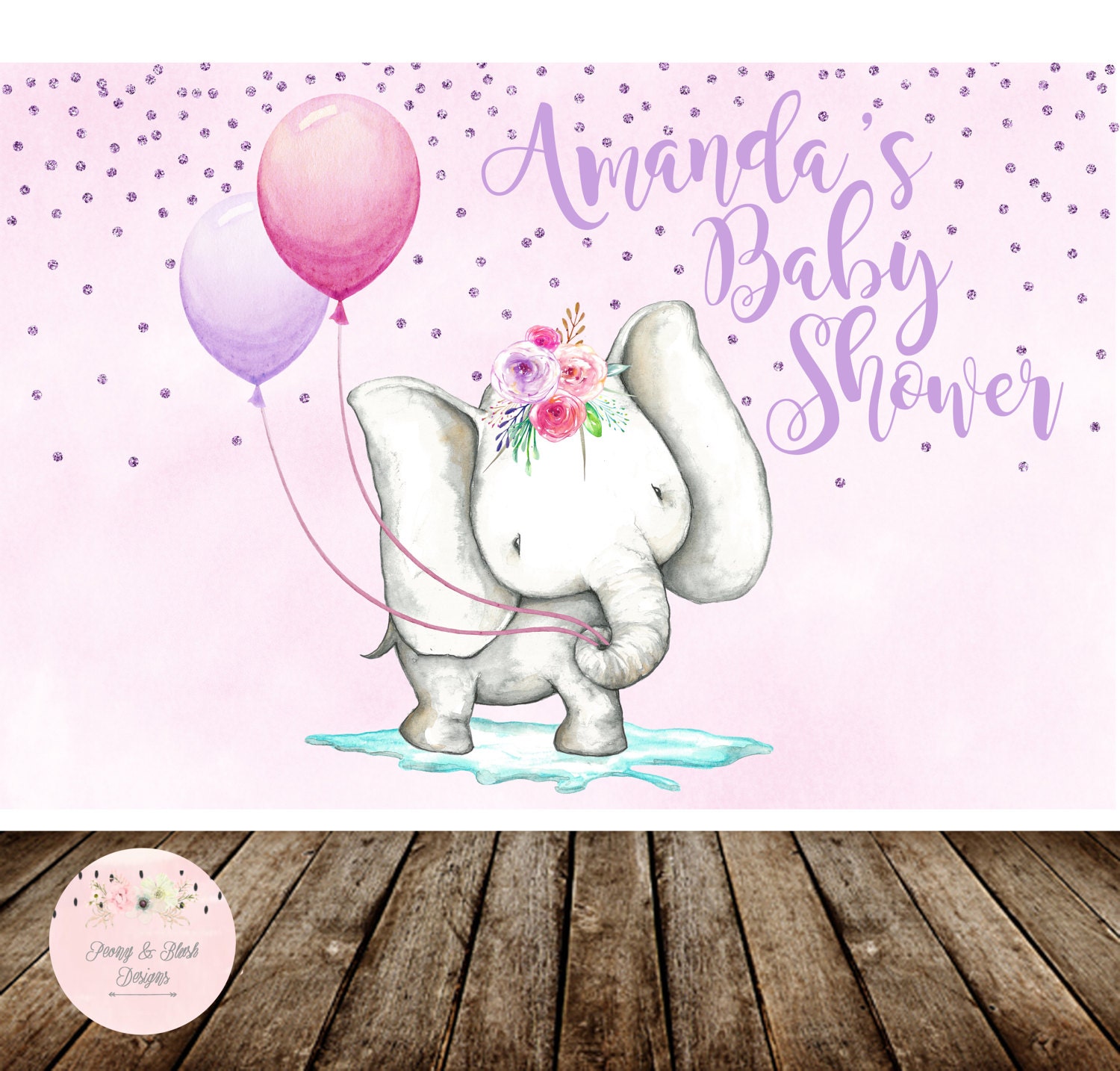 Custom Girl Elephant Baby Shower Backdrop Elephant Birthday
