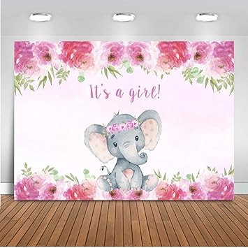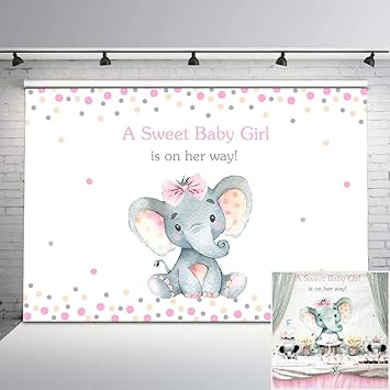Amazon Com Mocsicka Girl Elephant Baby Shower Backdrop Baby Girl