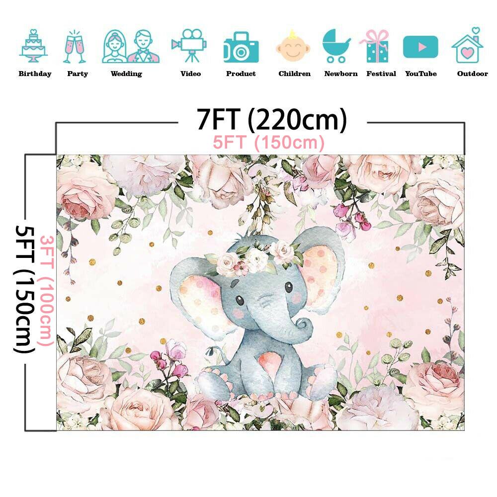 Funnytree 7x5ft Pink Floral Elephant Party Backdrop Flowers Girl