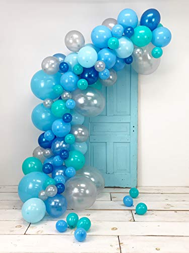 Junibel Balloon Arch Garland Kit 90 Blue Silver Tiffany Sm