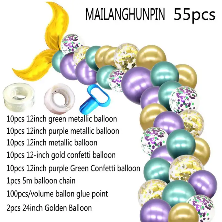 Lightsmile 55pcs Diy Mermaid Tail Balloon Garland Set Latex