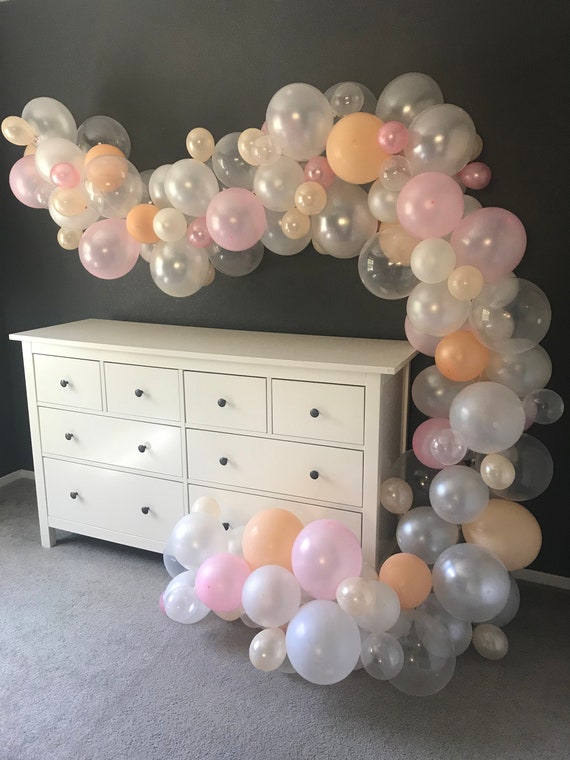 Peach Gray Balloon Arch Backdrop Wedding Balloons Baby