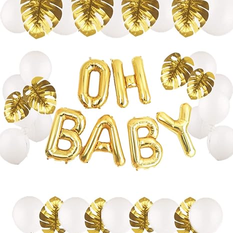 Laventy Set Of 31 Gold White Oh Baby Balloons Tropical Baby Shower