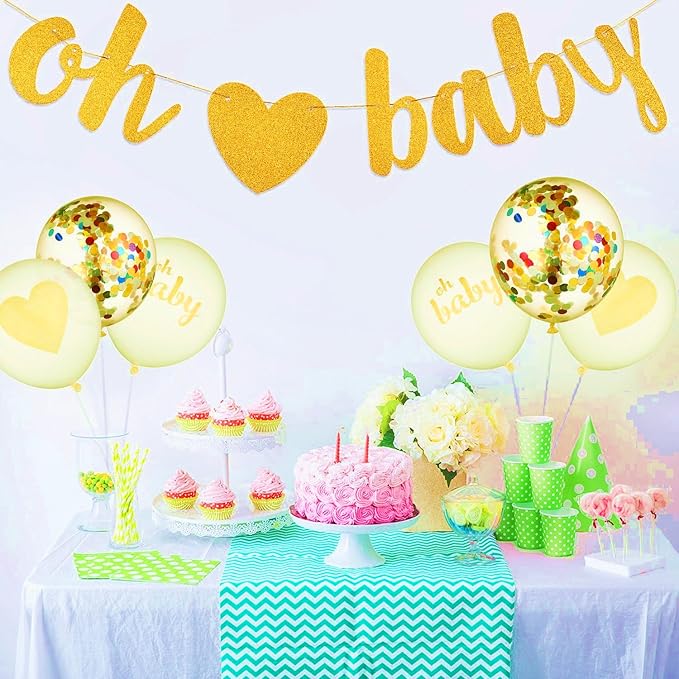 Baby Shower Neutral Decoration Oh Baby Banner Cake Topper And