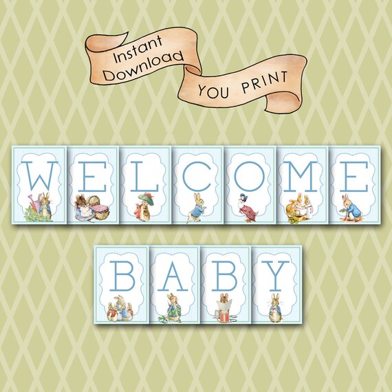 Peter Rabbit Shower Banner Welcome Baby Diy Printable Etsy